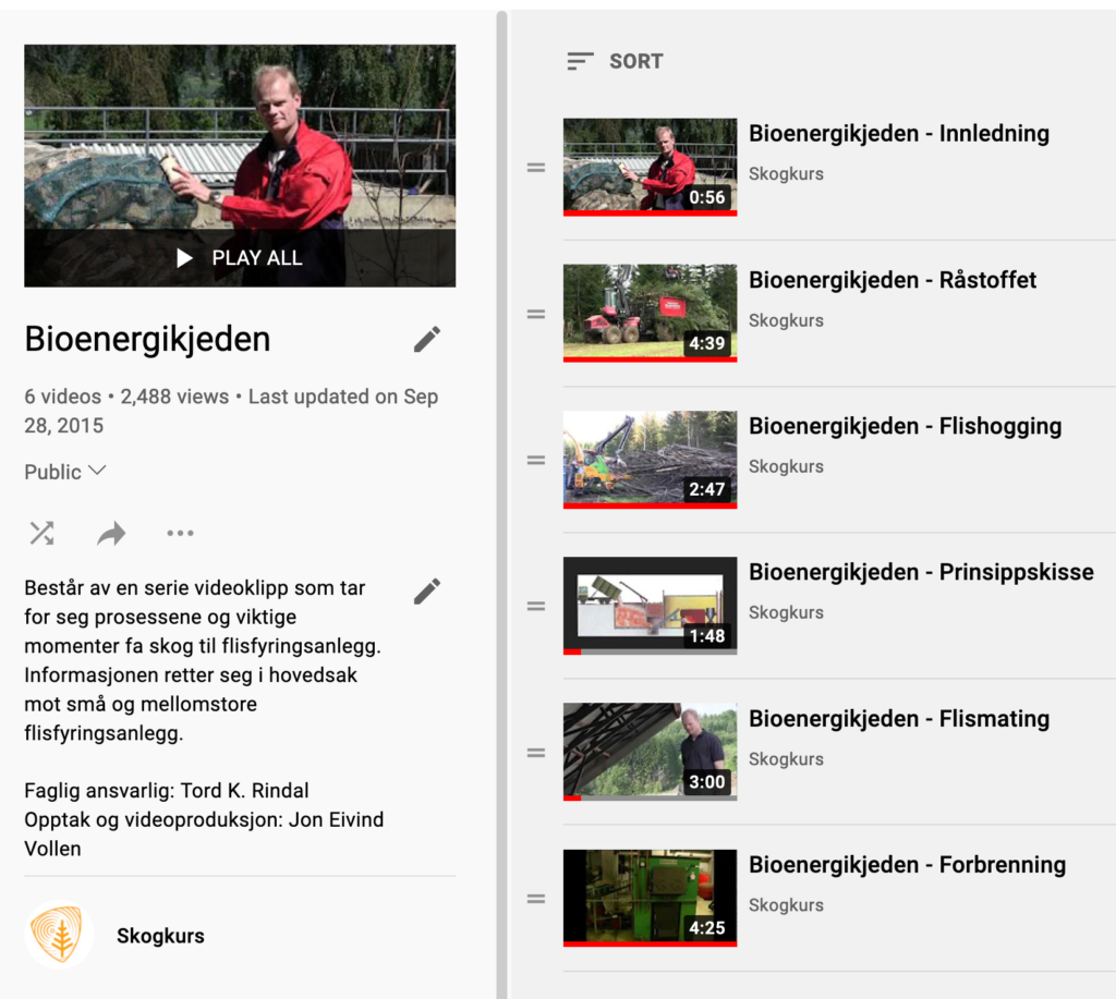 Her finner du en serie videoklipp som tar for seg verdikjeden fra fra skog til flisfyringsanlegg.
