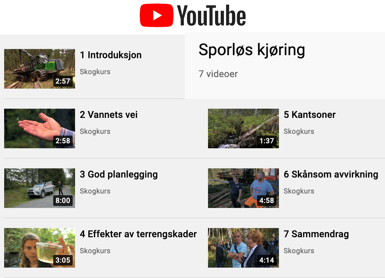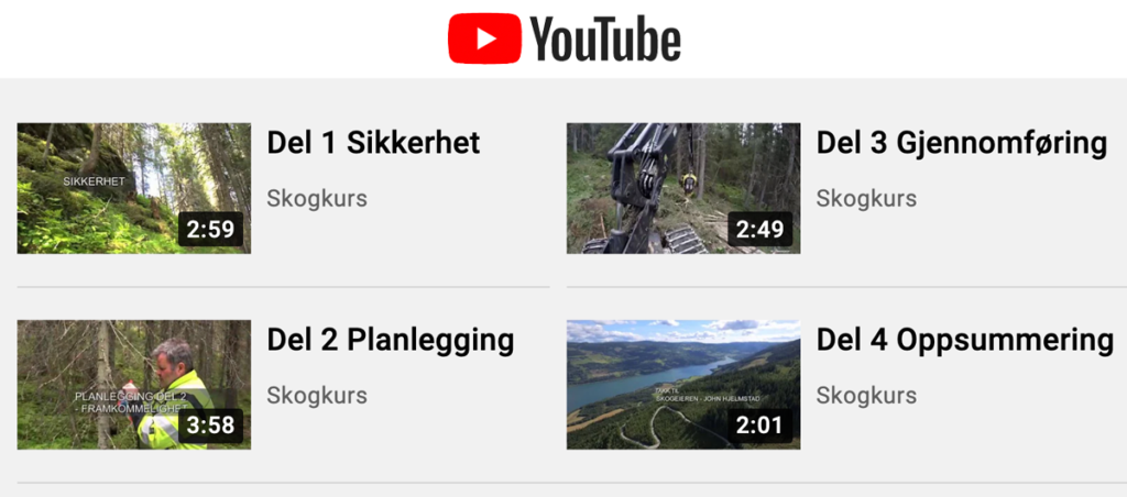 Denne spillelista på YouTube inneholder 17 klipp fra filmen «Effektiv kjøring med skogsmaskin».