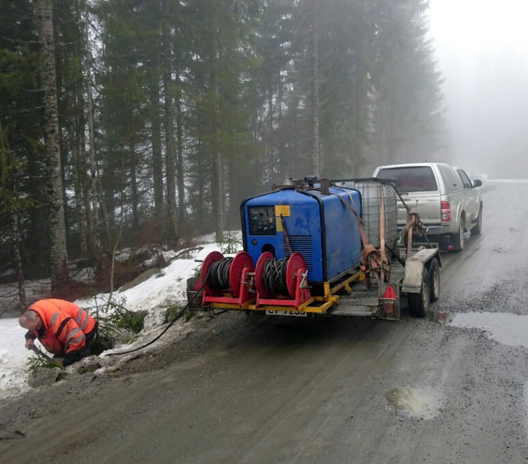 Overgangen mellom vinter og vår er sesong for tining av stikkrenner! Tette stikkrenner kan forårsake store vann- og erosjonsskader på en vei. En stikkrenne som har fryst bør tines like før snøsmeltingen setter inn. Da er det om å gjøre å få til et lite hull. Når vannet først har begynt å renne utvider hullet seg og isen forsvinner.