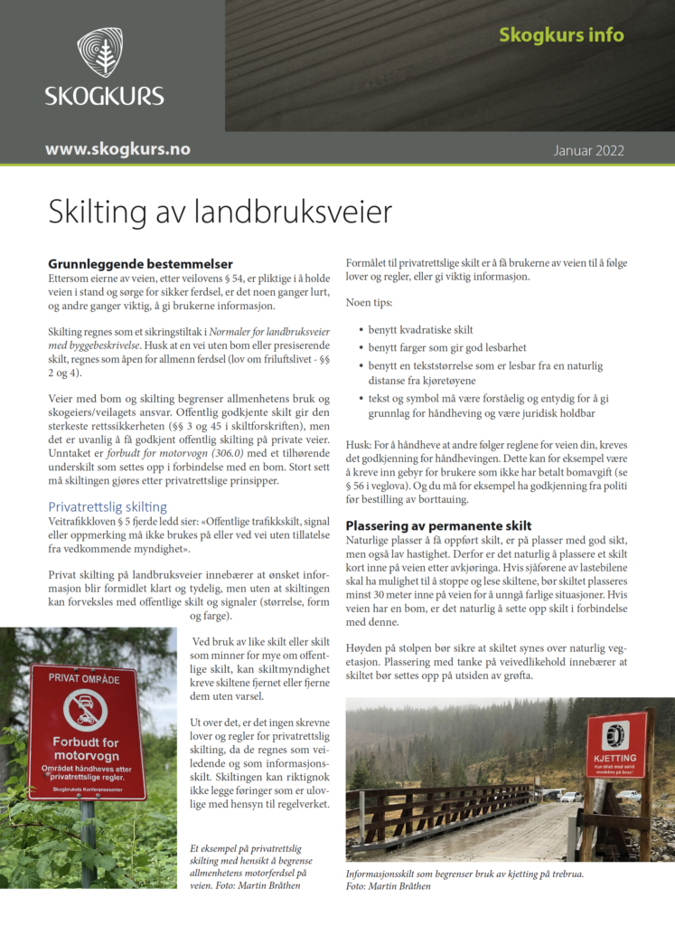 I tillegg har Skogkurs laget et hefte som i større grad kobler ansvar mot den praktiske organiseringen og driften av skogsveien.