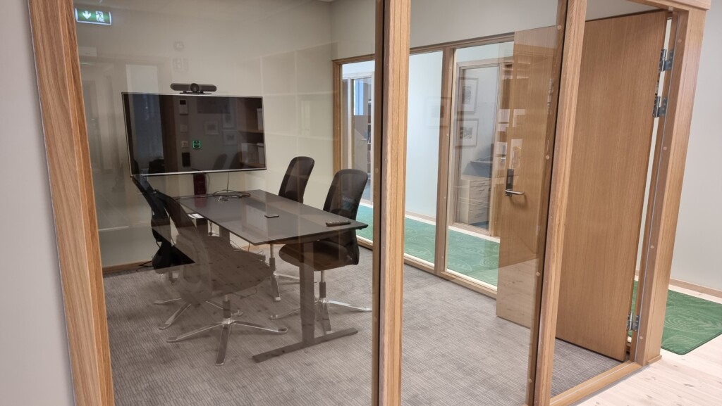 Bygget som selvfølgelig er bygget i tre, har et behagelig inneklima både når det gjelder lyd og utforming. Sammen med Skogkurs har Norwegian Wood Cluster, Skogselskapet og Tretorget.