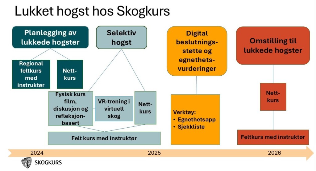 - 8 regiontilpassede kurs i lukket hogst i 2025 med totalt 57 deltakere