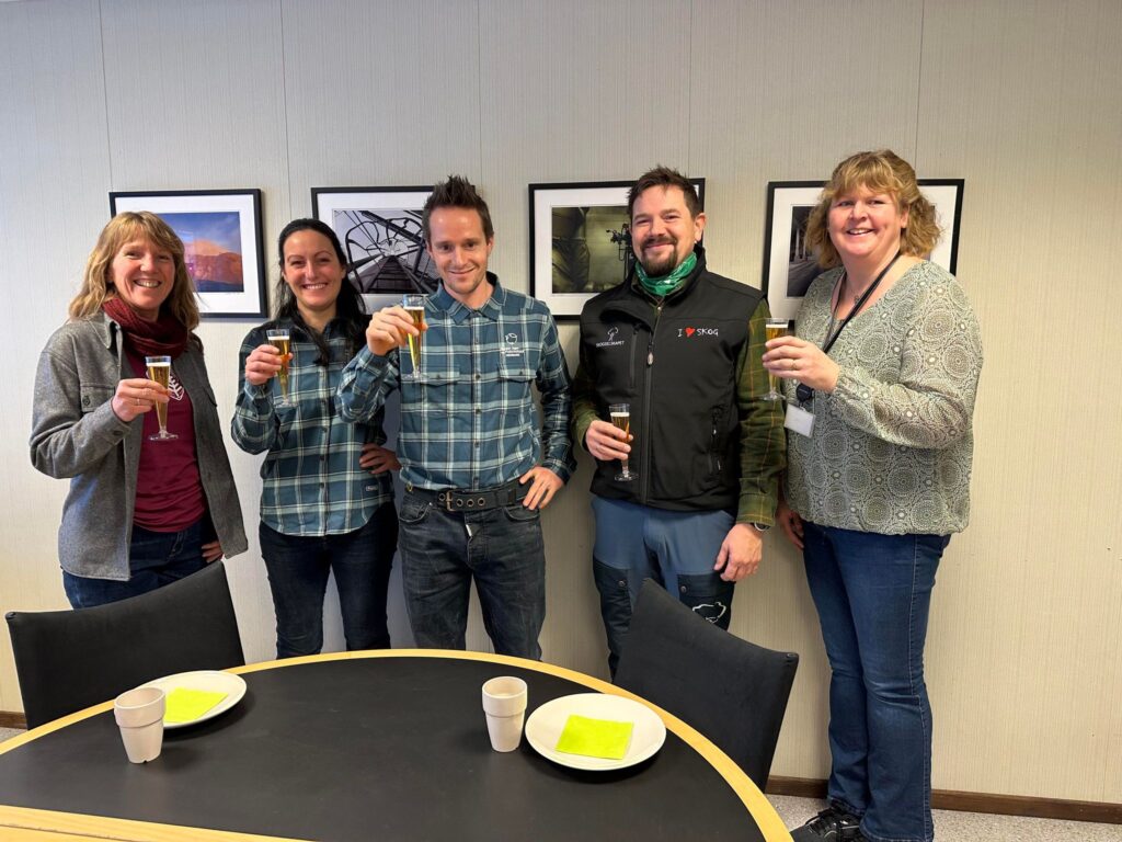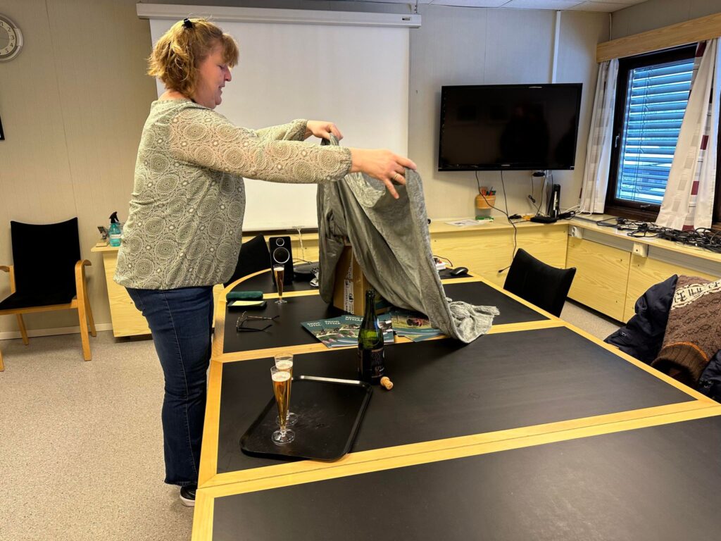 Det var tydelig glede og lettelse da duken ble tatt bort fra pappeskene og prosjektgruppa kunne lukte og kjenne på de ferske heftene som kom fra Flisa Trykkeri.