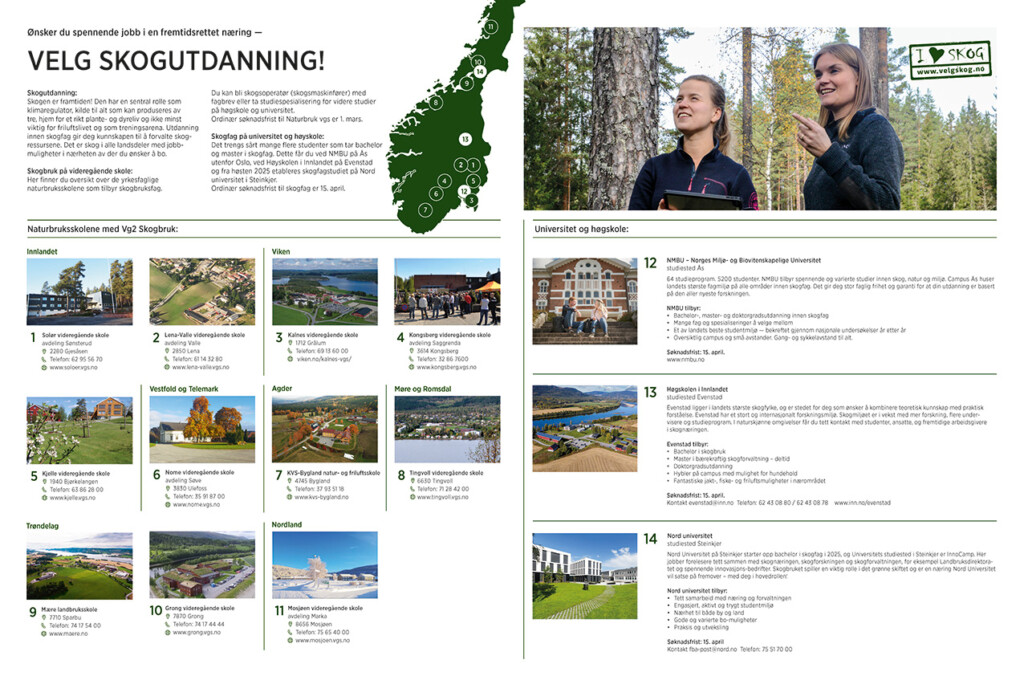 - På Velg Skog sine sider kan du se en oversikt over alle skolene som tilbyr skogutdanning i landet.